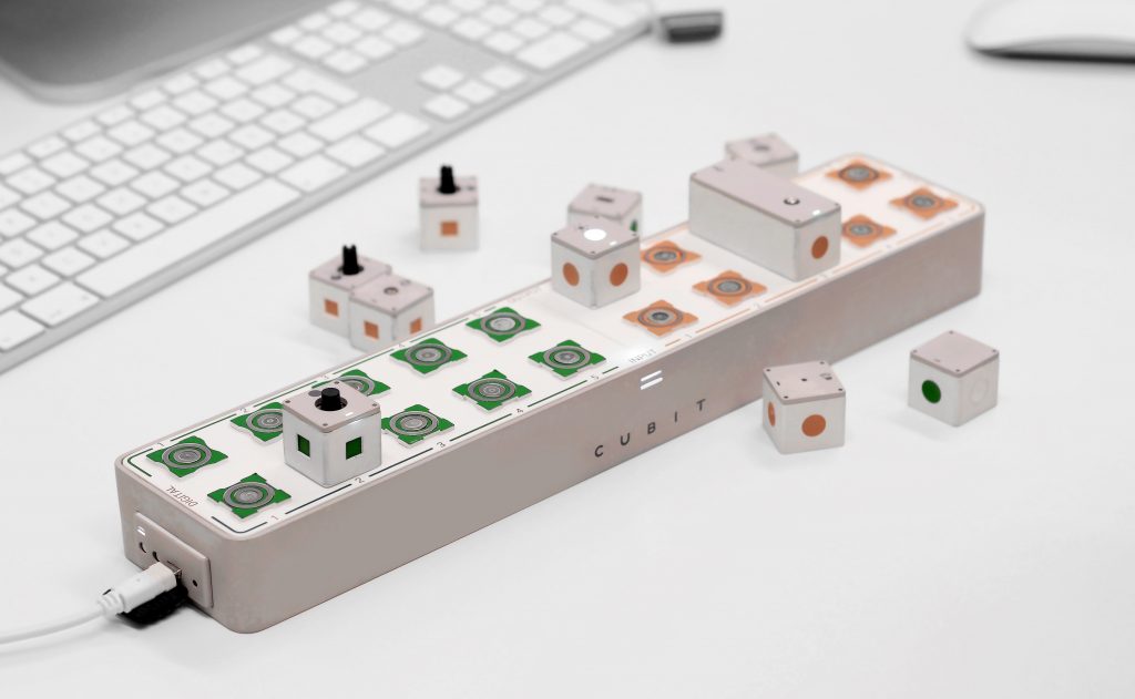 Cubit is a physical computing tool designed to help students prototype quickly and easily. It consists of two main components: hardware and software.