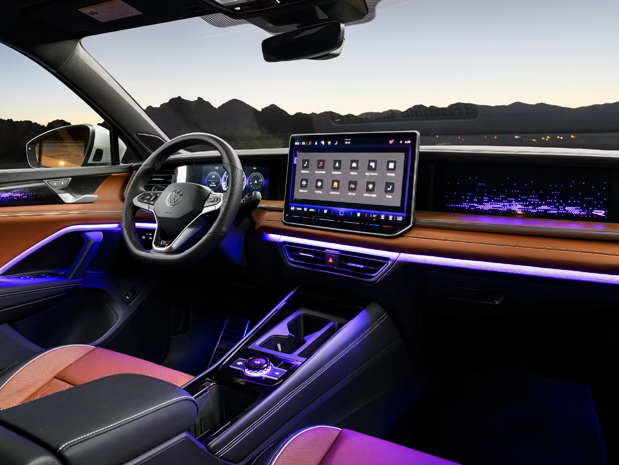 This is the Driving Experience Switch in the 2024 Tiguan model, a refined version of the switch found in previous Tiguan models. It offers multiple driving profiles tailored to different terrains, such as sand, which can be selected easily by turning the knob to the desired profile. The system then adjusts its settings to deliver the optimal balance of performance and comfort based on the chosen mode.